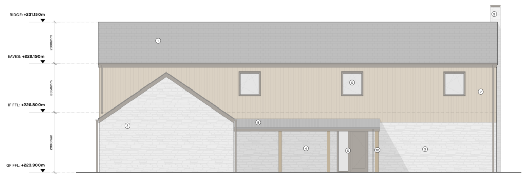 The layout and massing were carefully explored to minimise visual impact, preserving the character of the landscape and maintaining visual protection for neighbouring properties and important viewpoints. By responding thoughtfully to the rural setting, the proposal demonstrated that it would enhance rather than detract from the local area.
