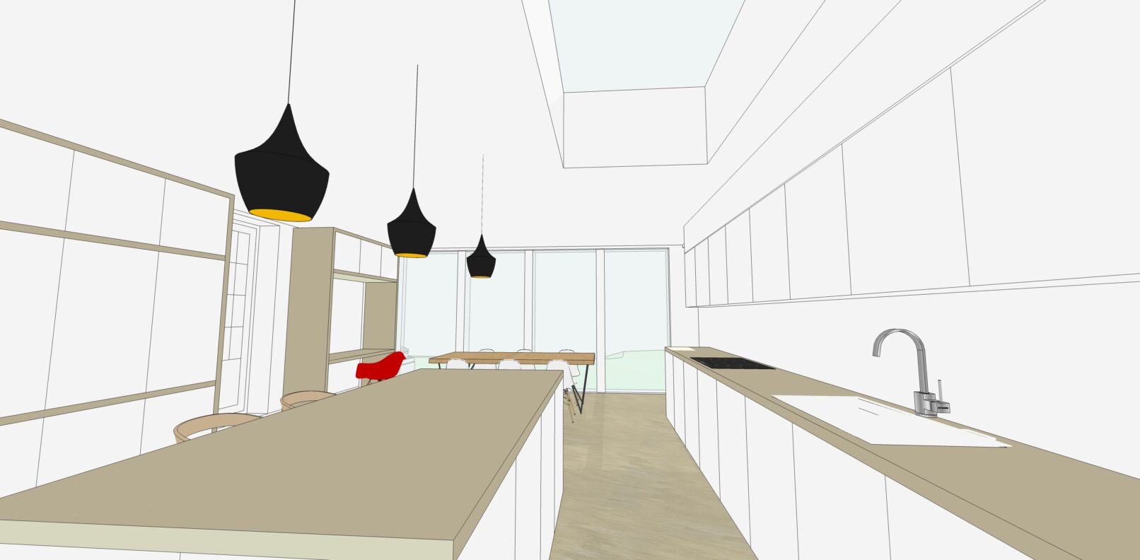 The first element of the project was the owners desire to enlarge the kitchen / dining / living space to the rear of the house – the place where they spend the majority of their time. The desire was to create a more garden room type space giving a better connection to the landscaped gardens on the west side of the property. Cleary the new extension needed to respect the existing façade and complement rather than compete with that.