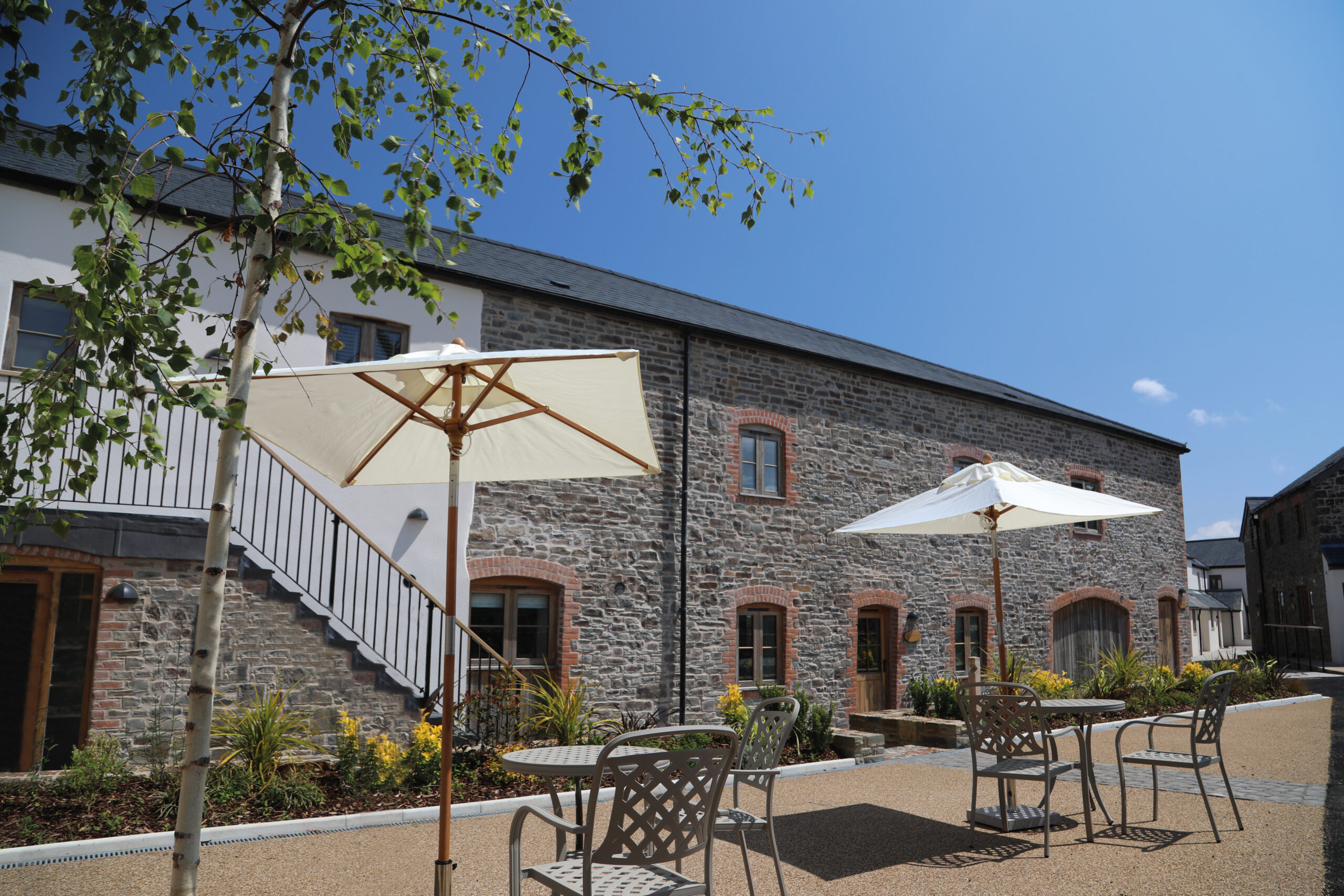 The new elements were designed to compliment the existing range of former farm buildings by using traditional materials, in response to the sensitive location – an AONB and neighbouring National Trust land.