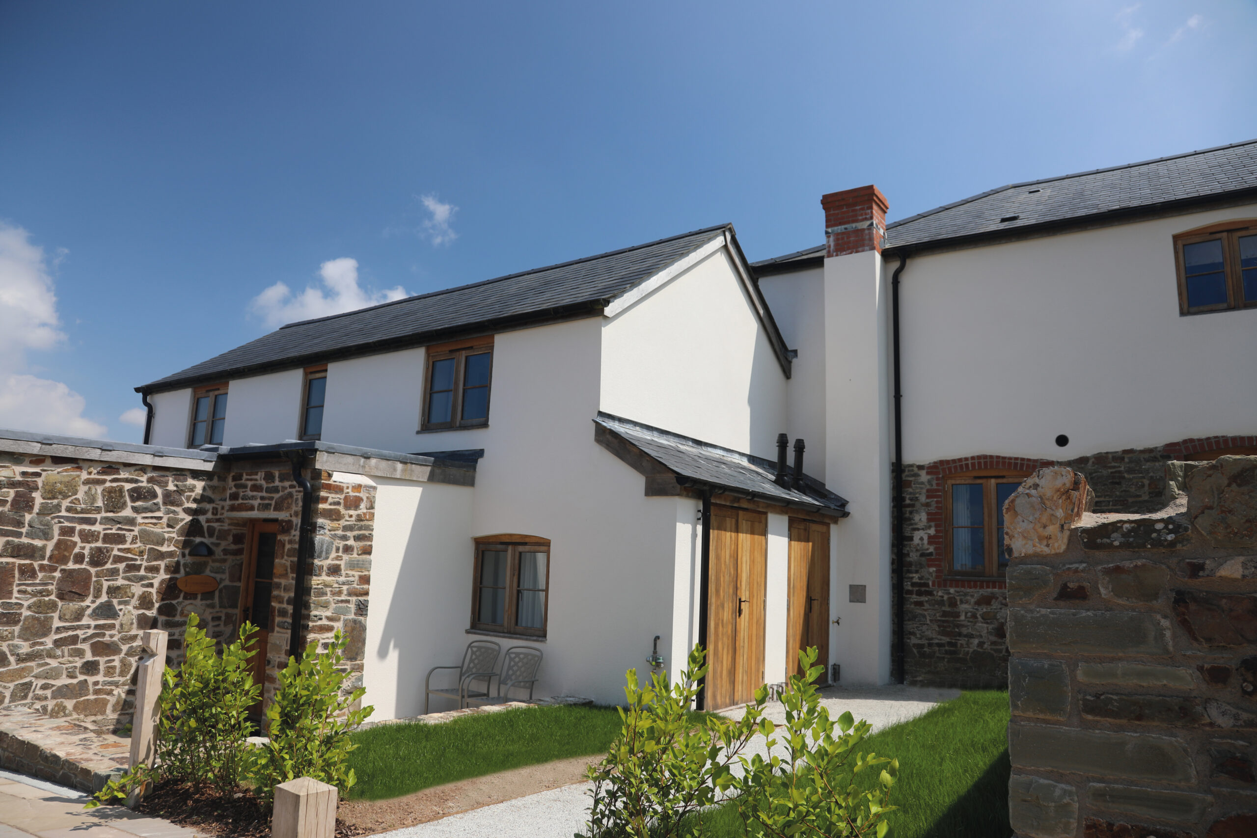 The existing cottages, (former farmhouse and barns), were totally refurbished using conservation techniques. Accompanying those works, we obtained planning consent for 3 new lodges at the north end of the complex along with a new reception building, refurbished leisure building, new swimming pool, tennis court and site wide landscaping.